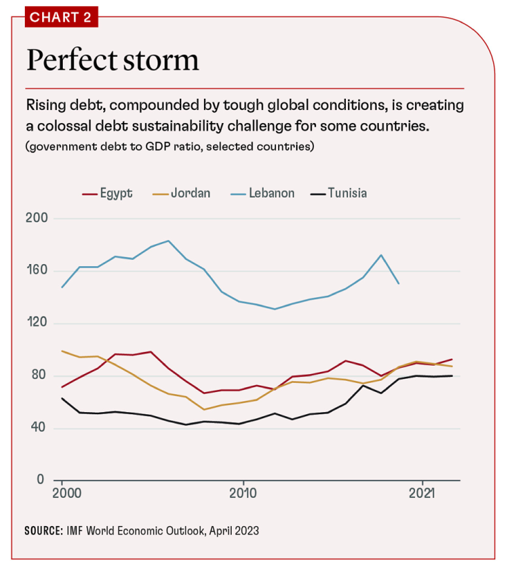 Parts of the Middle East and North Africa stand at the brink of a debt crisis
